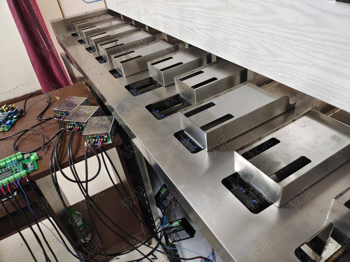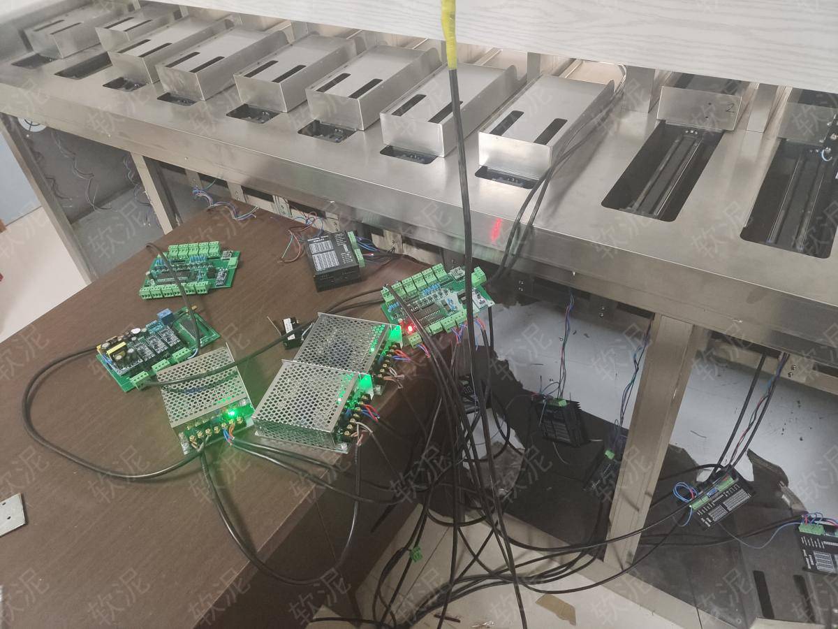 掃碼付款,自動(dòng)出貨。軟泥PLC操作步進(jìn)電機(jī),精準(zhǔn)控制出貨過(guò)程。通過(guò)超聲波傳感器檢測(cè)貨道剩余庫(kù)存數(shù)量。 |